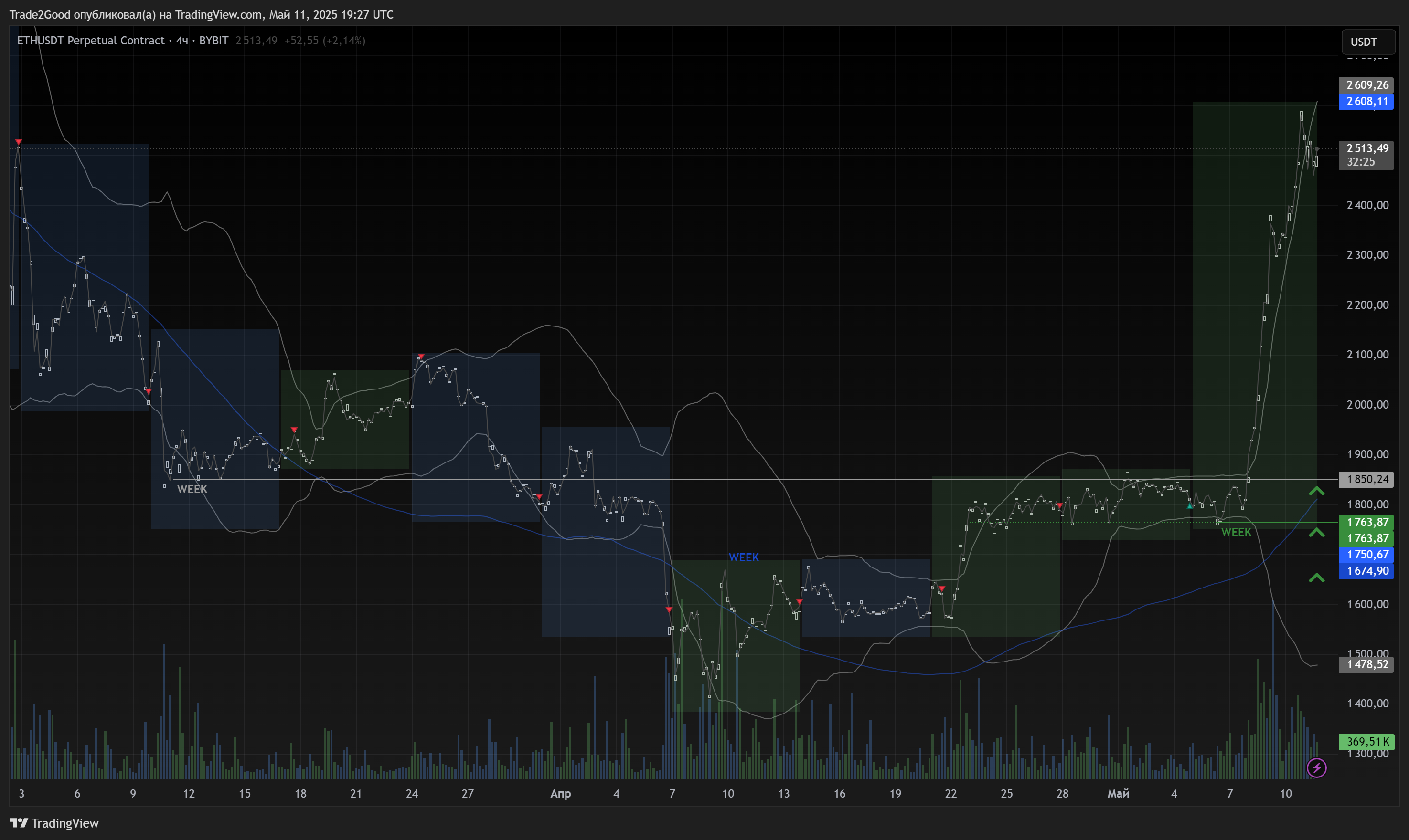 Эфир меняет тренд со спада на рост и дает нам совершенно новые уровни для входа в сделку, победа за покупателями, торгуем на покупку.