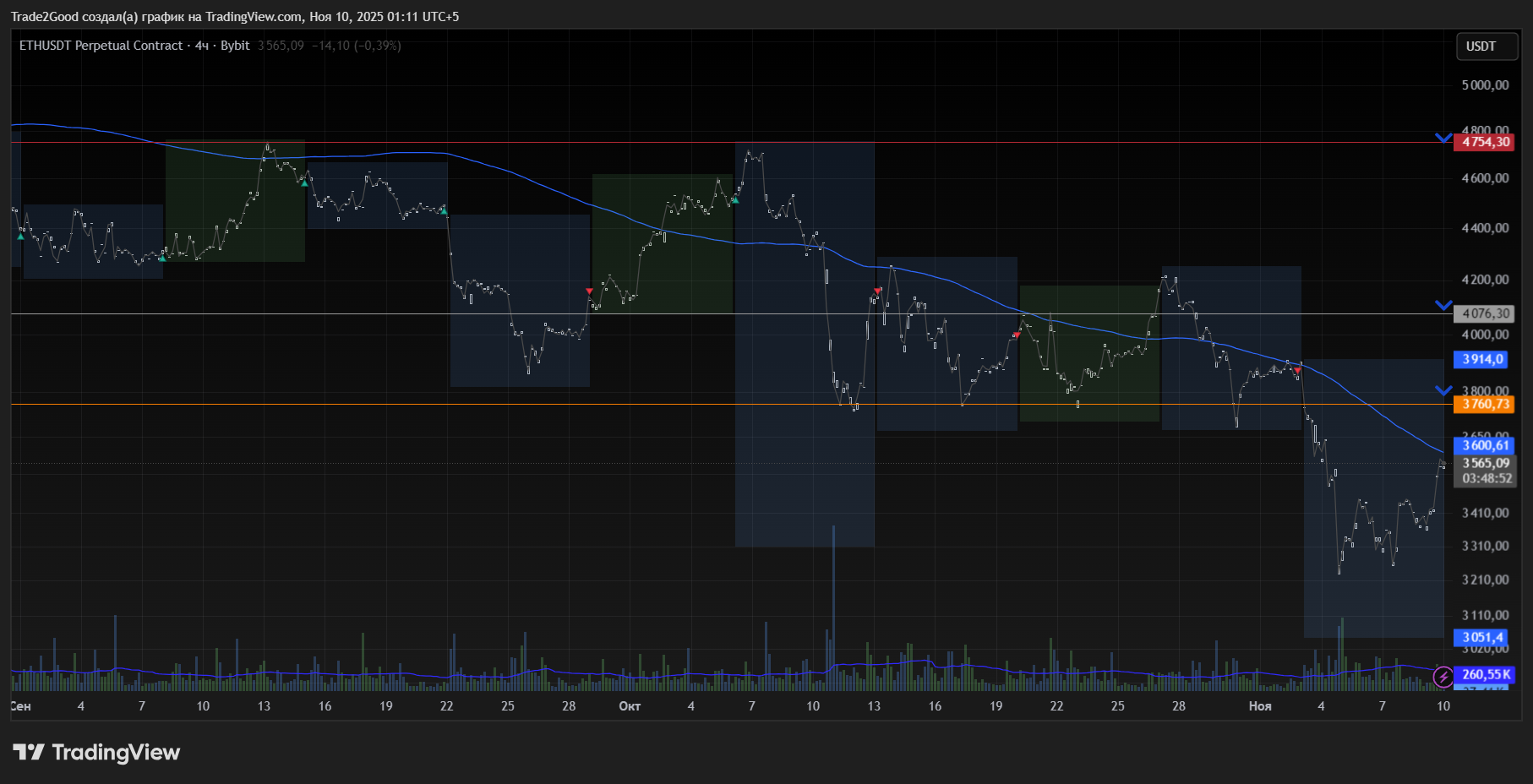 EP = $4754.3 – пик цены, от которого пошло последнее падение.