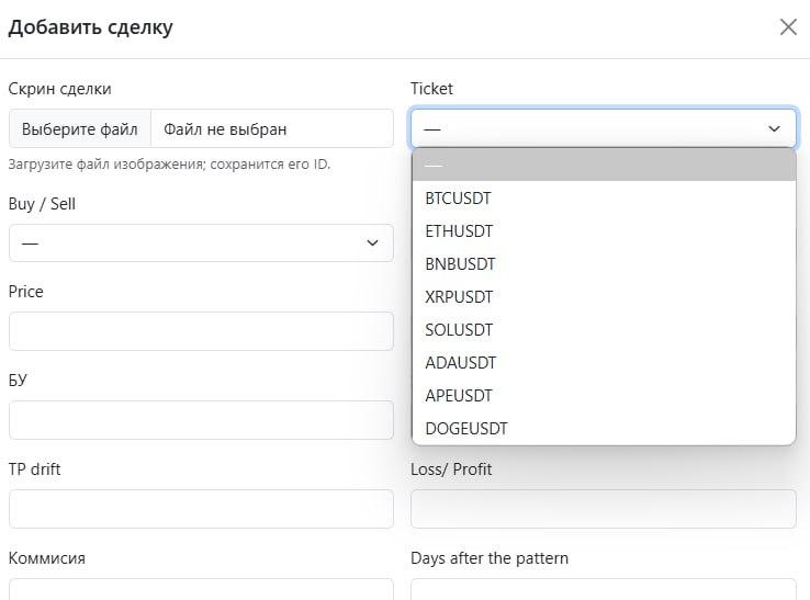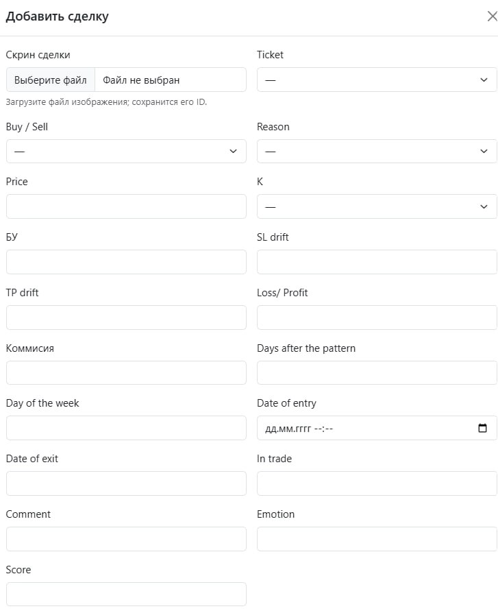• Скриншоты сделок. Одно из самых ценных обновлений — возможность добавлять скриншоты по каждой сделке. Для меня важно не просто числа, а визуальное подтверждение того, как в тот момент выглядела ситуация на рынке. Через год можно вернуться, восстановить картину и понять ход рассуждений.