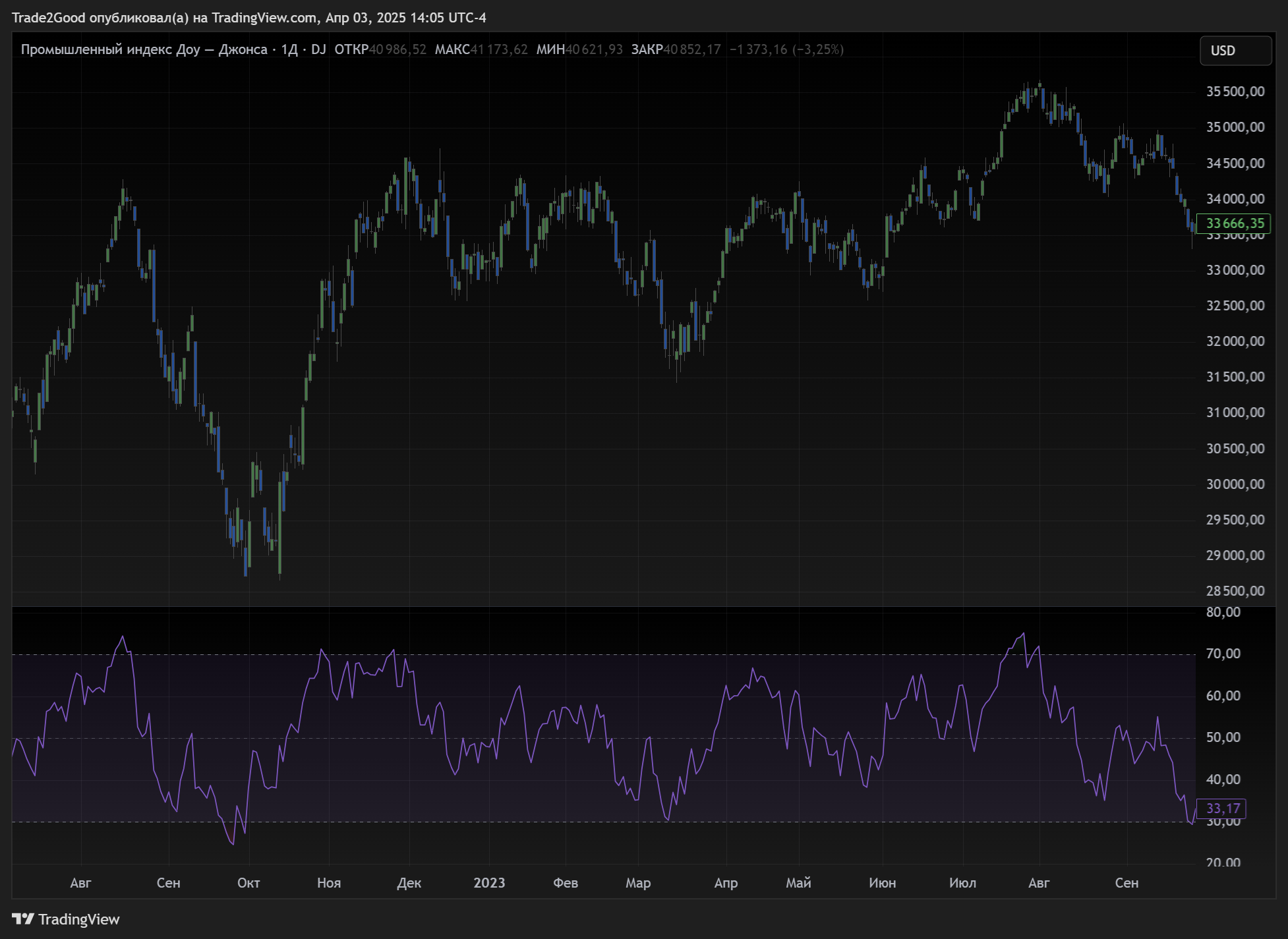 • RSI (индекс относительной силы) — показывает силу текущего тренда и его потенциал.