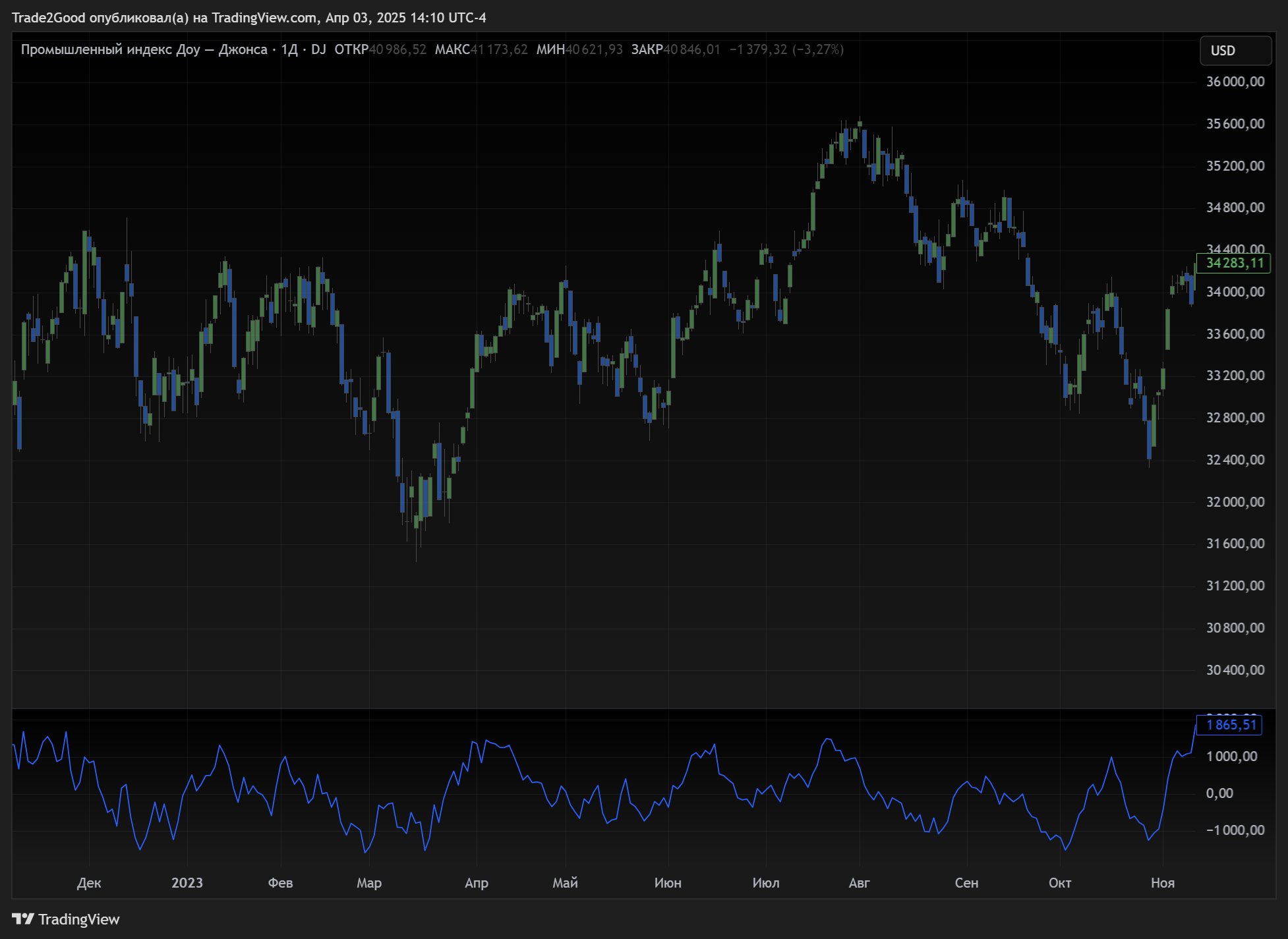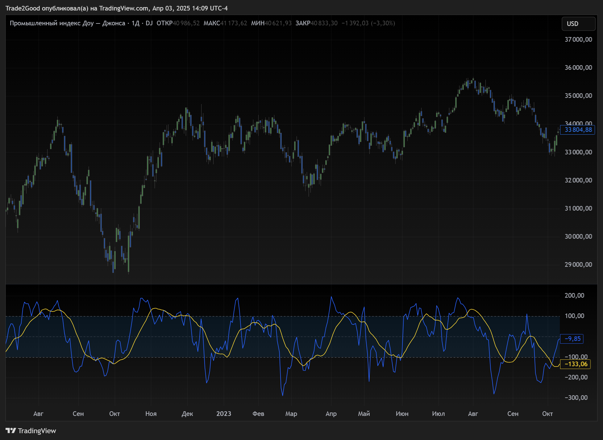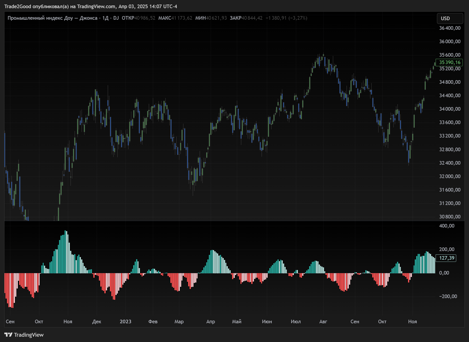 MACD (Схождение и расхождение скользящих средних) — один из самых надёжных осцилляторов. Помогает увидеть возможную смену тренда и дивергенции — расхождения между графиком цены и индикатором, которые часто сигнализируют о развороте.