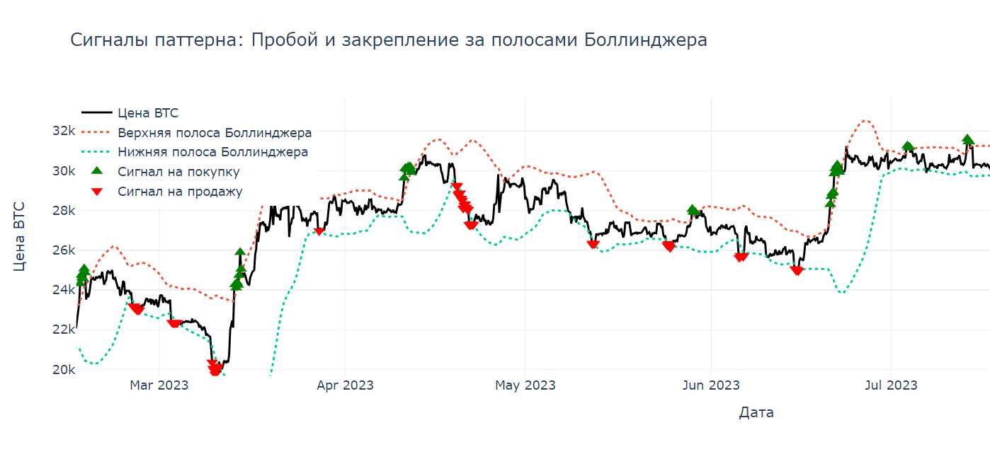 fig.update_layout(<br>title='Сигналы паттерна: Пробой и закрепление за полосами Боллинджера',<br>xaxis_title='Дата',<br>yaxis_title='Цена BTC',<br>legend=dict(x=0, y=1),<br>template='plotly_white',<br>hovermode='x unified'<br>)
