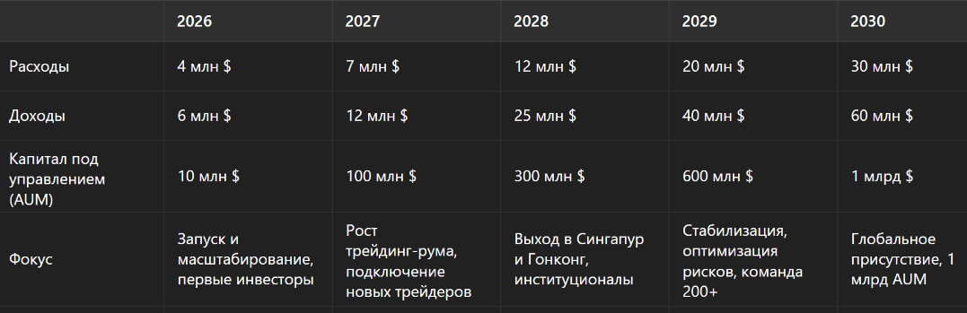 Но рынок — это только часть картины. Внутри фонда мы выстраиваем четкие процессы и регламенты. Каждый отдел знает, за что он отвечает: трейдинг, разработка, маркетинг, поддержка. У каждого KPI, у каждого измеримый результат. Такая структура позволяет держать капитал под контролем и обеспечивать защищенность на 110%.