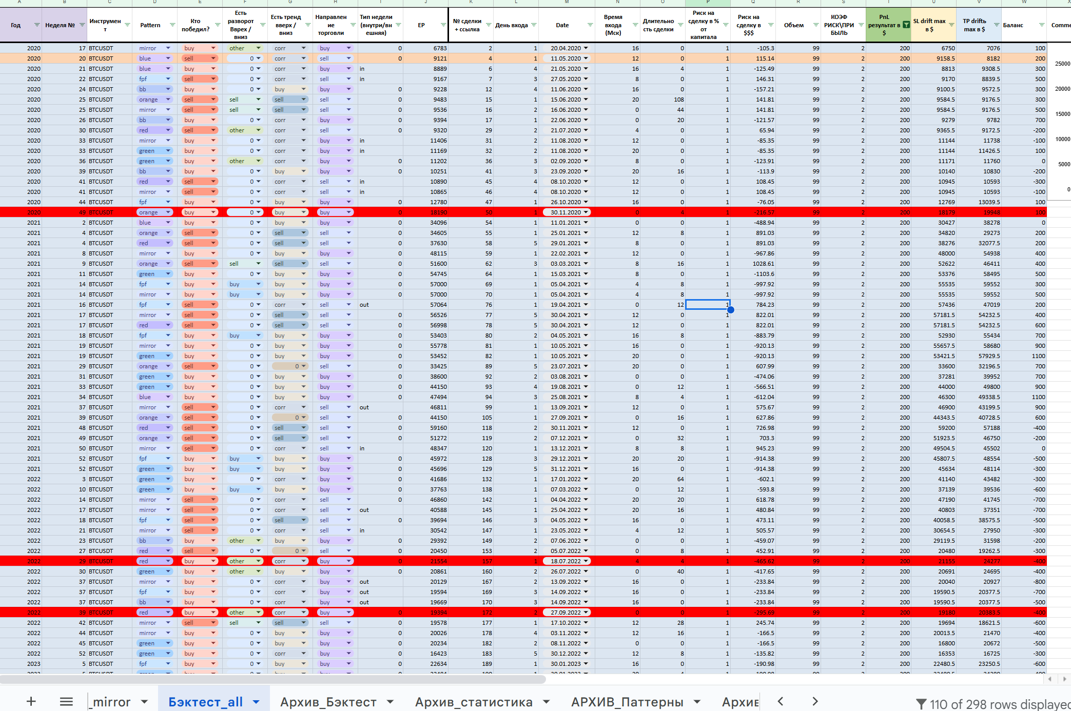 • Таблица бэктестинга. Перед запуском новой идеи — всегда тестирую ее на истории. И только потом допускаю в реальную торговлю.