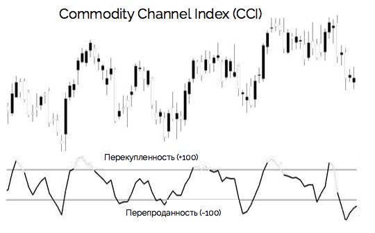 - CCI (индекс товарного канала) — аомогает определить экстремальные уровни отклонения цены от средней, что может сигнализировать о смене тенденции.