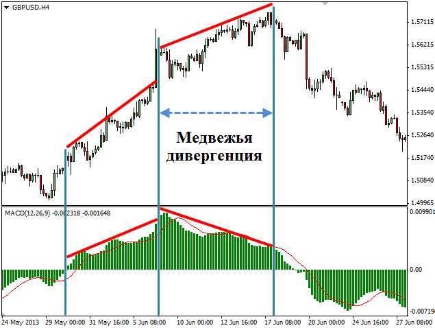 - MACD (скользящие средние схождения/расхождения) — отслеживает изменение силы тренда через разницу между скользящими средними; часто используется для подтверждения разворота.