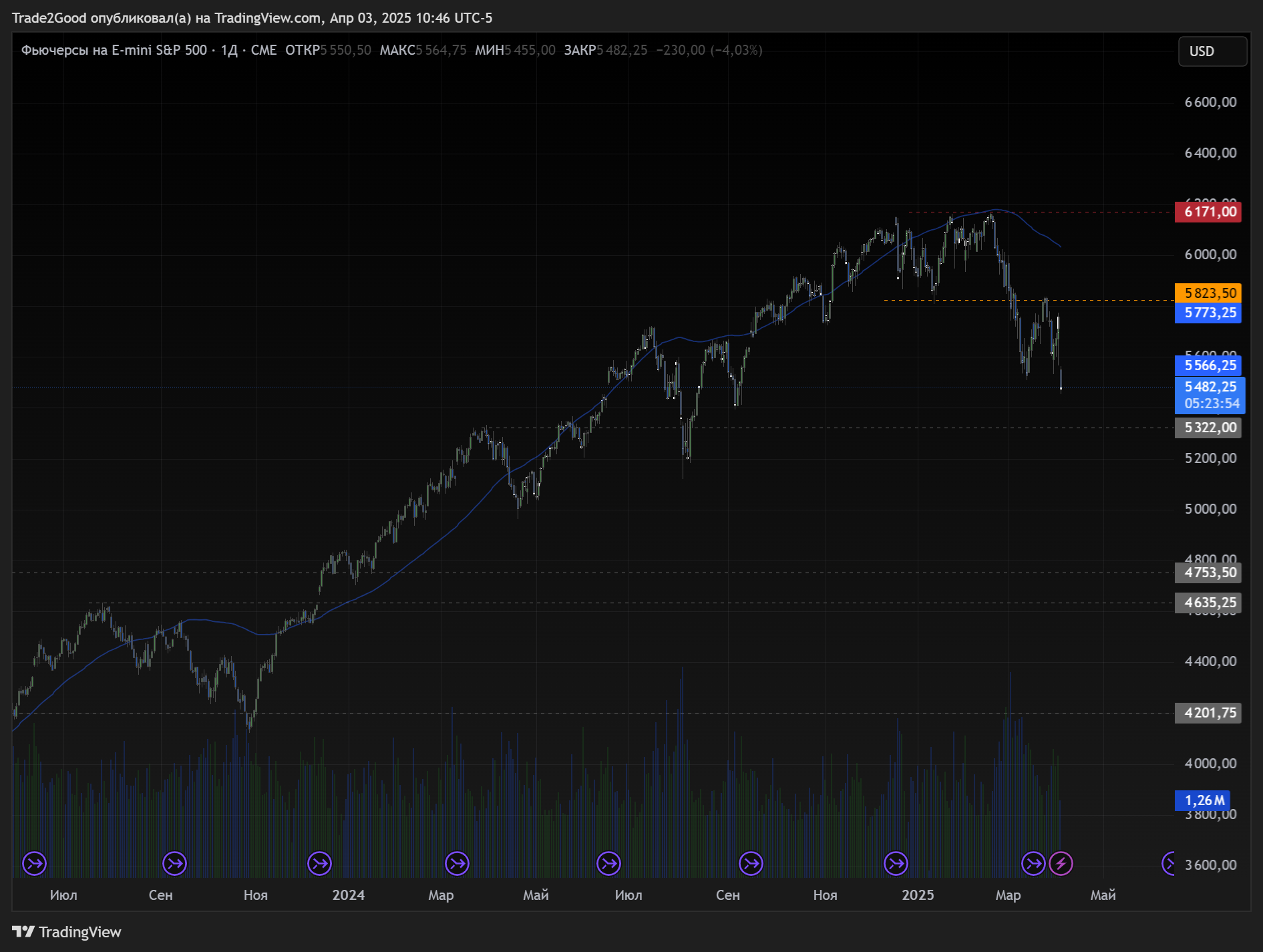 Недавно индекс S&P 500 ощутимо снизился, что заставляет задуматься о возможном начале нисходящего тренда. Основной причиной этого снижения стали новые тарифы, введенные президентом США Дональдом Трампом. Фьючерсы на S&P 500 упали на 3,26% к утру 3 апреля 2025 года, что отражает опасения инвесторов относительно замедления экономического роста и повышения инфляции.