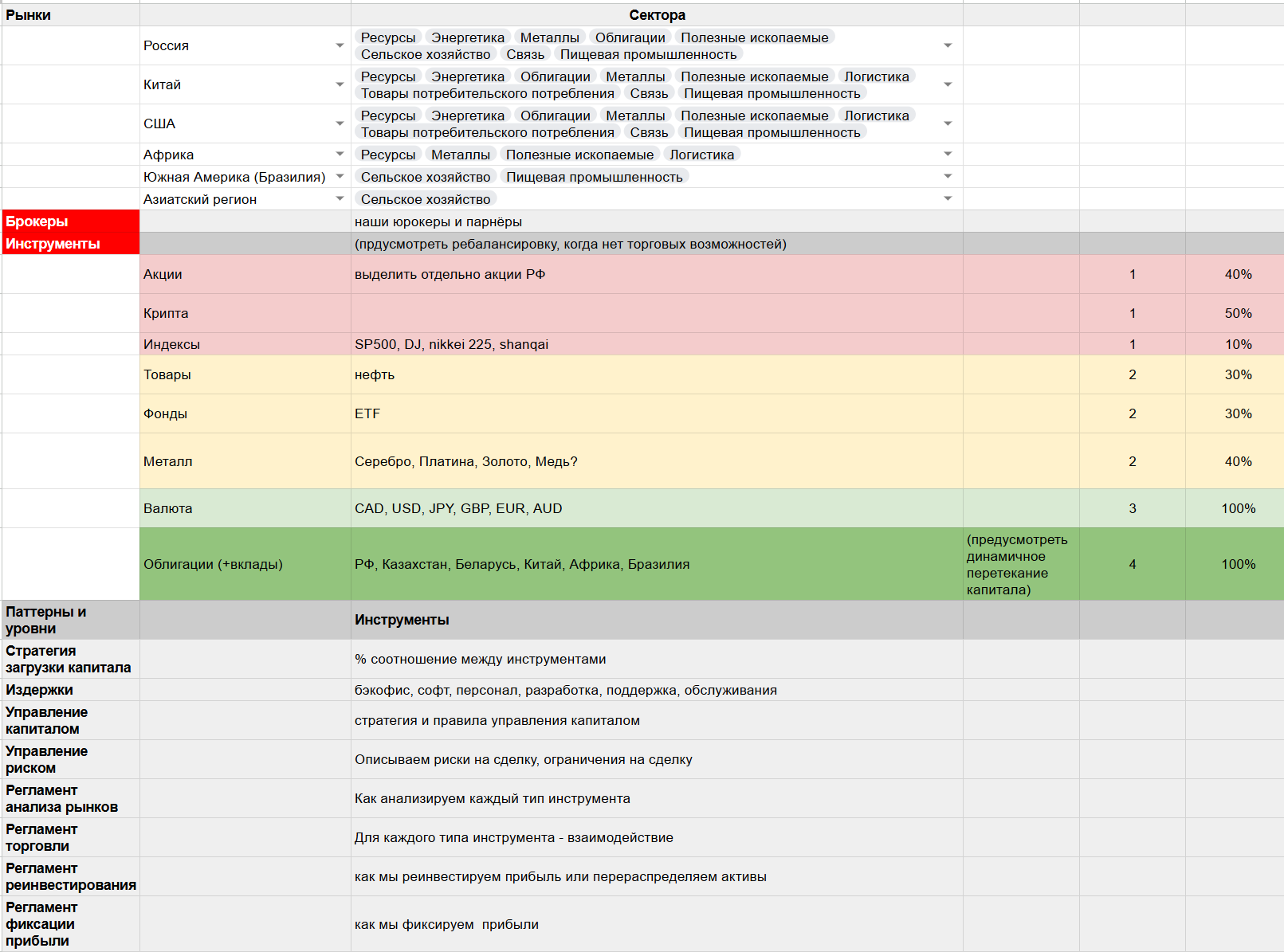 - Анализ рынков. Не импровизируем. Есть повторяемая структура анализа — от макро до конкретных активов. Это экономит время и повышает точность решений.