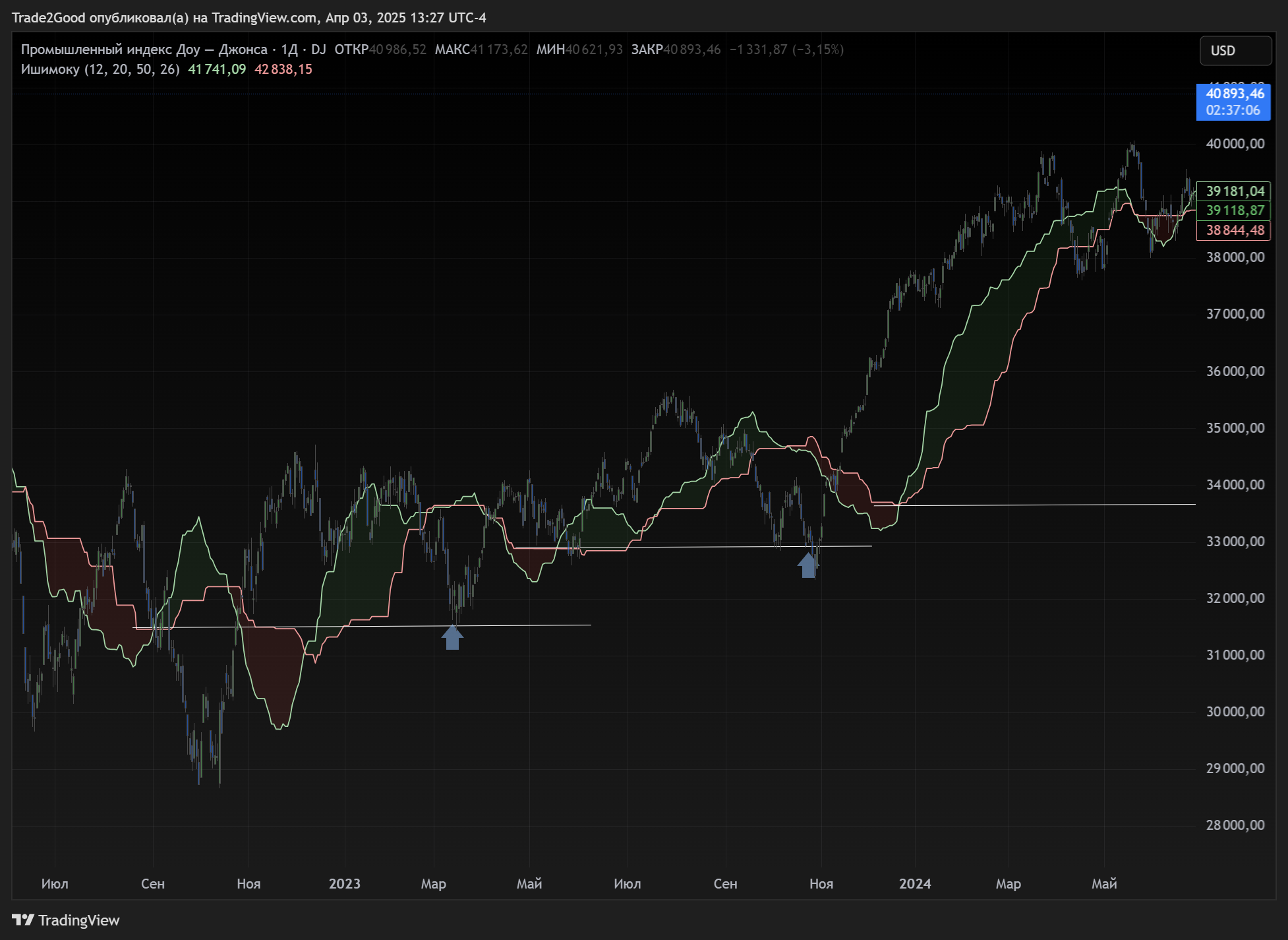 Индикатор Ишимоку (Ichimoku Kinko Hyo)— этот индикатор состоит из пяти линий, которые строятся на основе средних значений максимумов и минимумов за разные периоды. Он показывает не только направление тренда, но и возможные уровни поддержки и сопротивления. Также Ишимоку помогает найти хорошие точки для входа в рынок и выхода из него.